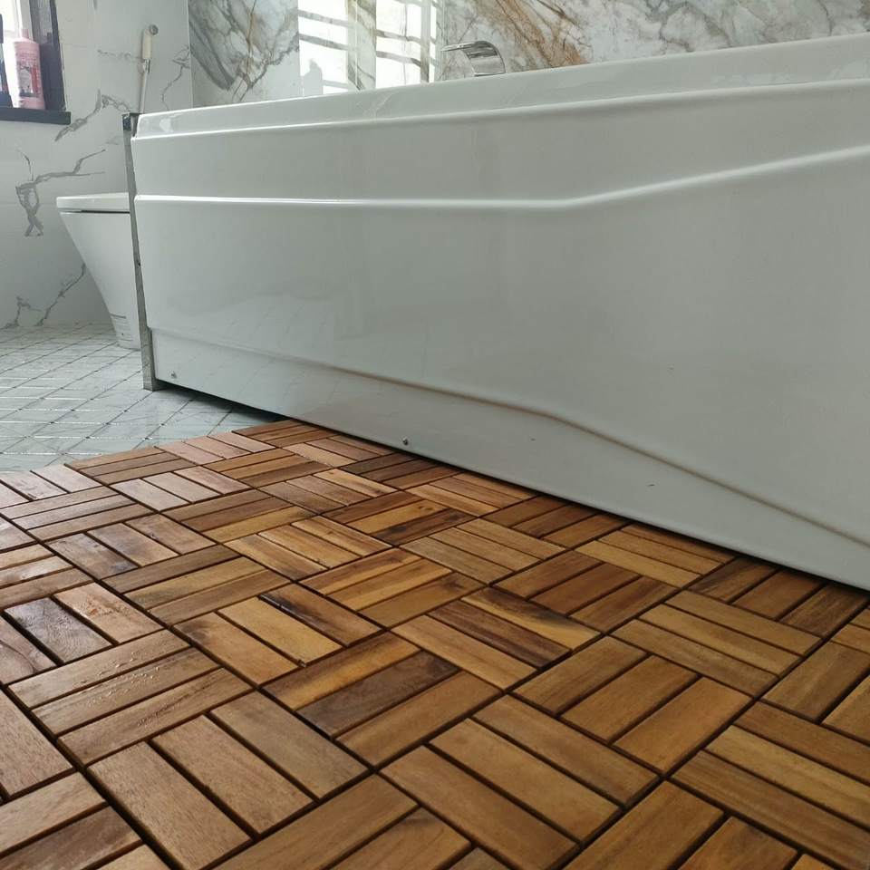 กระเบื้องปูพื้นไม้ Acacia แบบเข้าลิ้น