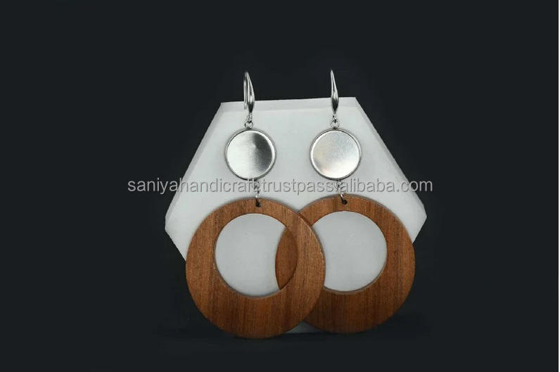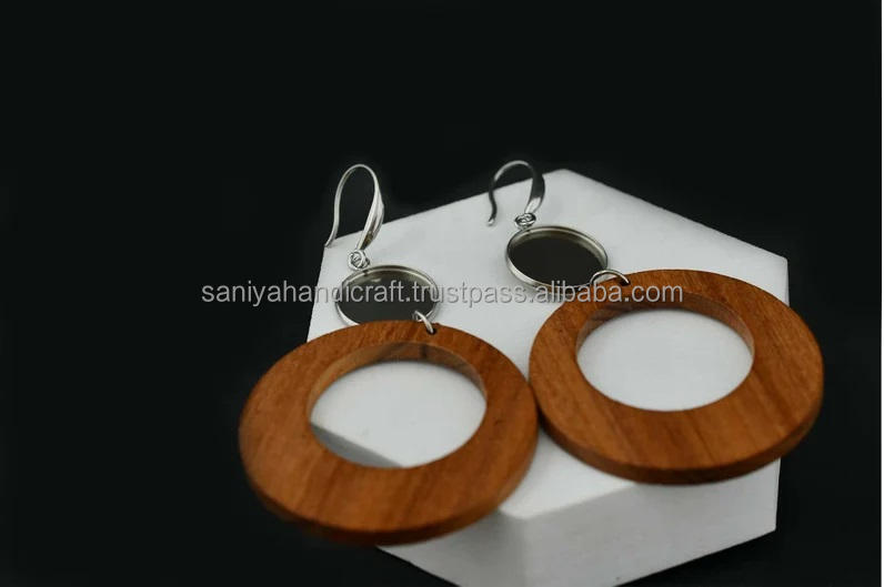 ต่างหูไม้ขนาดใหญ่ต่างหูทำจากไม้แบบเจาะรูออกแบบได้ตามต้องการ