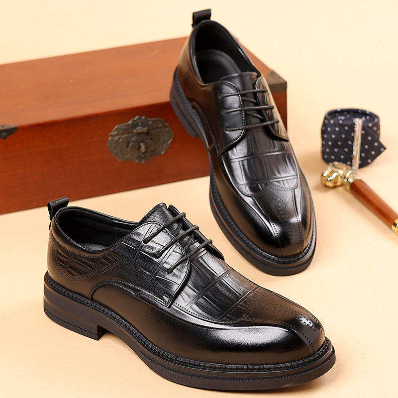 รองเท้าหนังแท้สีดำคุณภาพสูงสำหรับผู้ชาย ผลิตตามสั่ง งานแฮนด์เมด ระบายอากาศได้ดี กันน้ำ เหมาะสำหรับใส่ลำลองหรืองานแต่งงาน