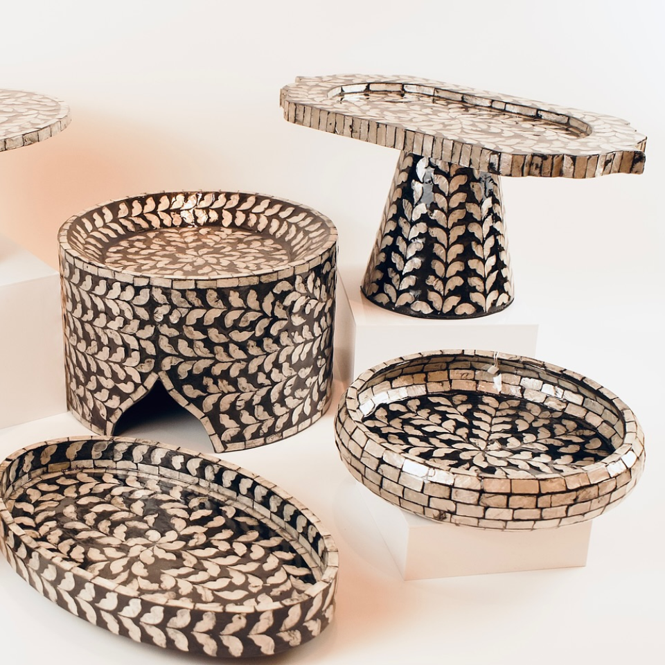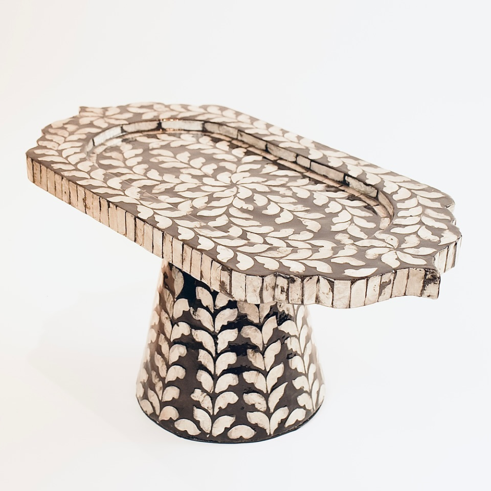 ถาดใส่อาหารฝังมุกพร้อมขาตั้งทันสมัย