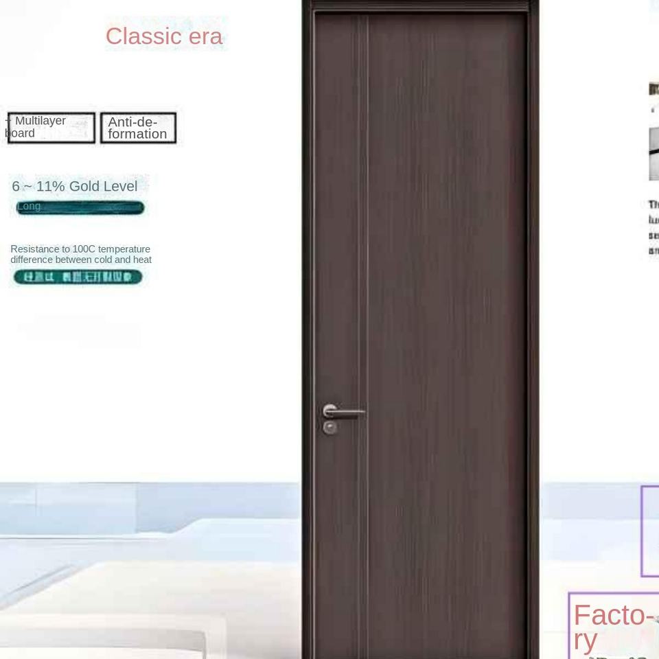 ประตูเรียบทำจากไม้เนื้อแข็งสไตล์โมเดิร์นคุณภาพสูงกันเสียงสำหรับใช้ภายในห้องน้ำห้องนั่งเล่น