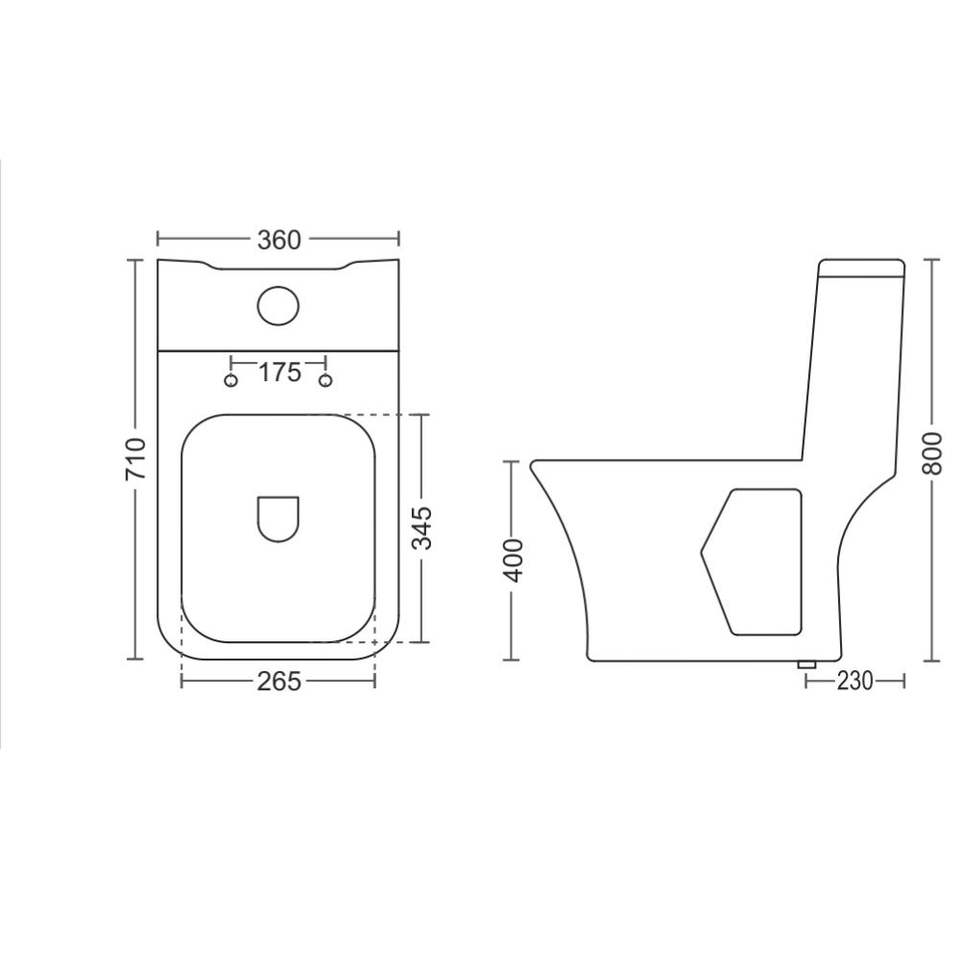 โถสุขภัณฑ์แบบชิ้นเดียวทรงมุม รุ่นทันสมัย คุณภาพสูง สีขาว ผลิตจากเซรามิกพอร์ซเลน ขนาด 710x360x800 มม. สำหรับใช้ในงานก่อสร้างเชิงพาณิชย์