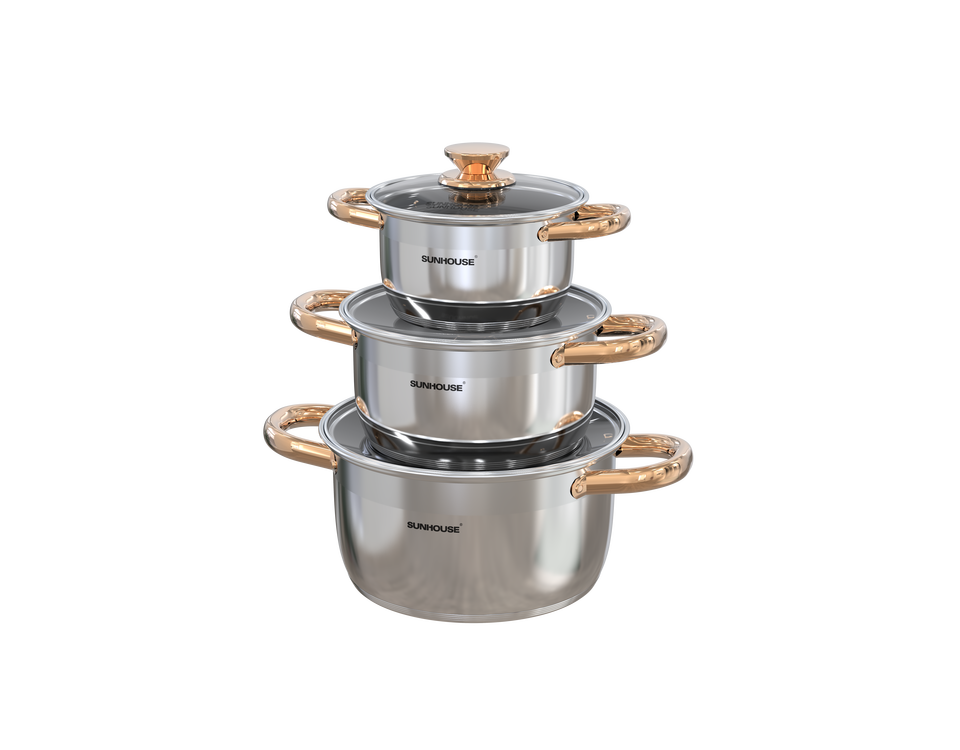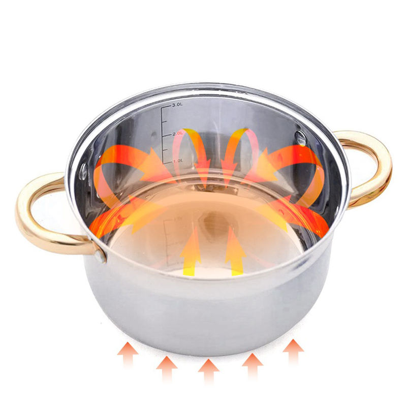 ชุดหม้อสแตนเลสอเนกประสงค์3ชิ้นคุณภาพสูงดีไซน์คลาสสิกพร้อมก้น5ชั้นและฝาแก้ว