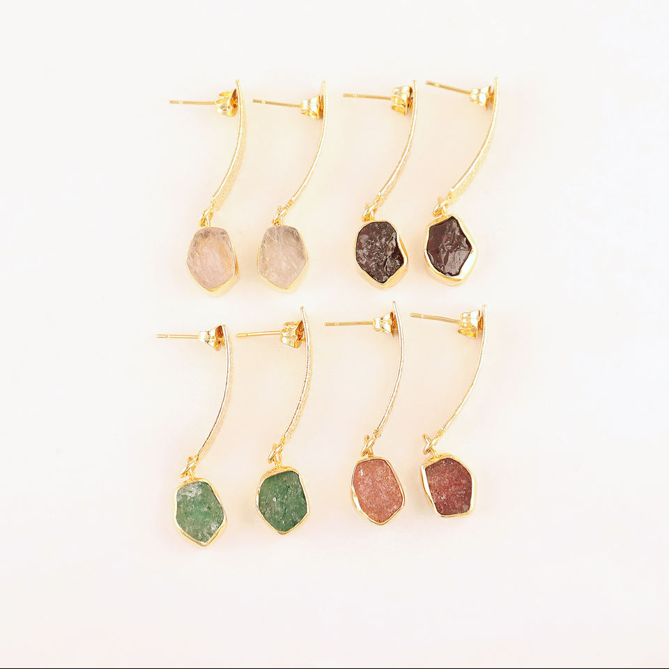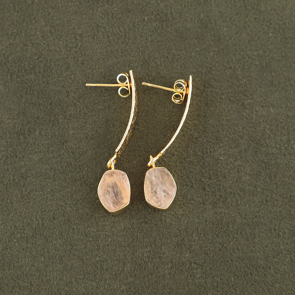 ต่างหูห้อยประดับคริสตัลโรสควอตซ์ธรรมชาติคุณภาพสูง ชุบทอง ดีไซน์เนอร์ ตกแต่งด้วยโลหะ