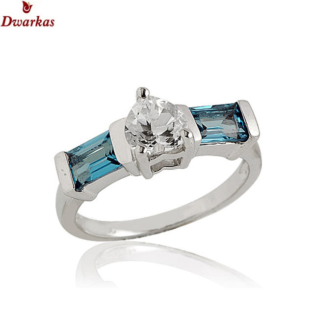 คอลเลกชันแหวนเพชรหลายเม็ดสีฟ้าโทแพซแบบดั้งเดิมของ925ที่สง่างามแบบดั้งเดิมคุณภาพสูงสำหรับเป็นของขวัญวาเลนไทน์