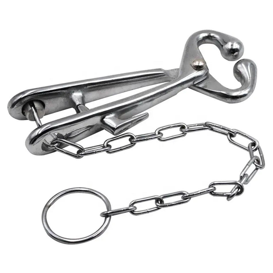 คีมจับวัวสเตนเลสที่ใส่จมูกวัวพร้อมสายยาวเครื่องมือสัตวแพทย์โคเลี้ยงสัตว์
