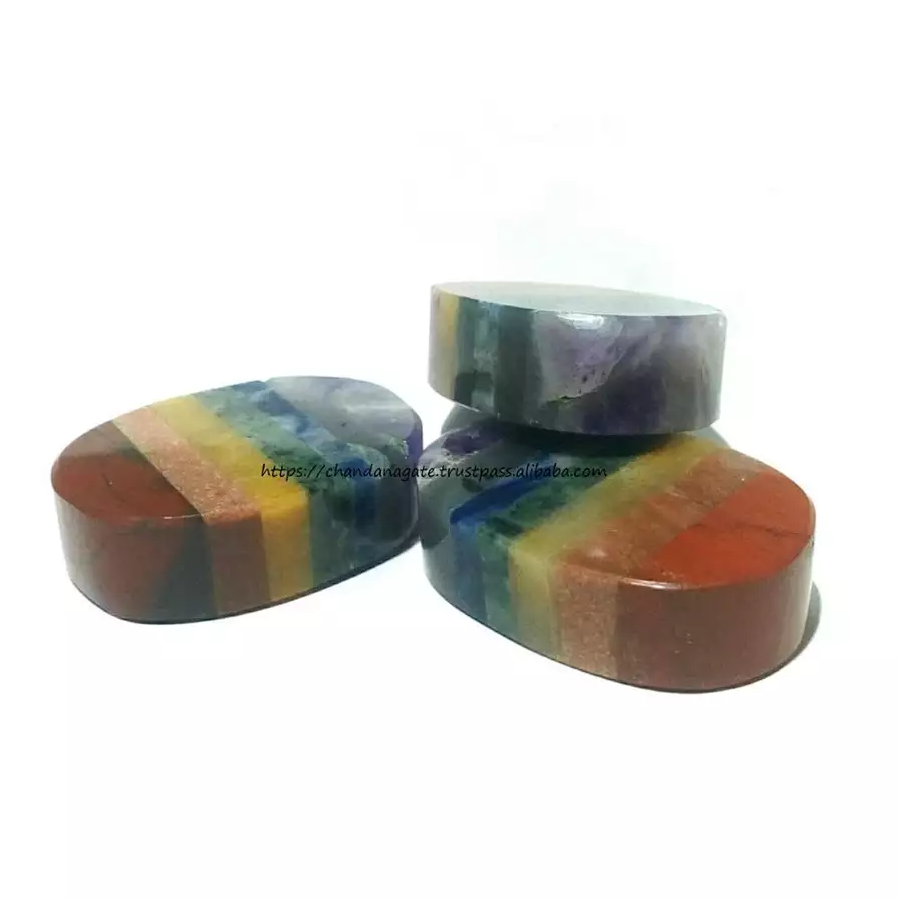 หินทรงแบน7จักระคริสตัลทรงแบนทรงรีหินธรรมชาติ