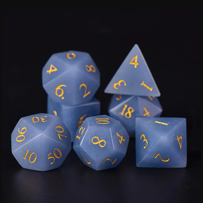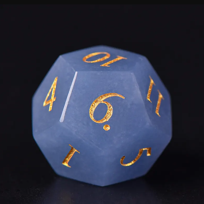 ลูกเต๋าหินคุณภาพสูง แองเจลไลต์ คริสตัลธรรมชาติ หินบำบัดเรกิ แกะสลักตามสั่ง ชุดลูกเต๋าคริสตัลสไตล์ไวกิ้ง