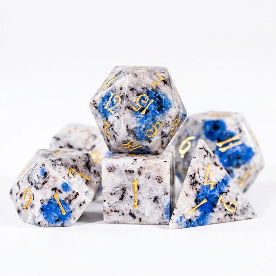ลูกเต๋าหินคุณภาพสูง K2 แจสเปอร์ คริสตัลธรรมชาติ หินบำบัดเรกิ ลูกเต๋าหินแกะสลักแบบกำหนดเอง ชุดลูกเต๋าคริสตัลไวกิ้ง