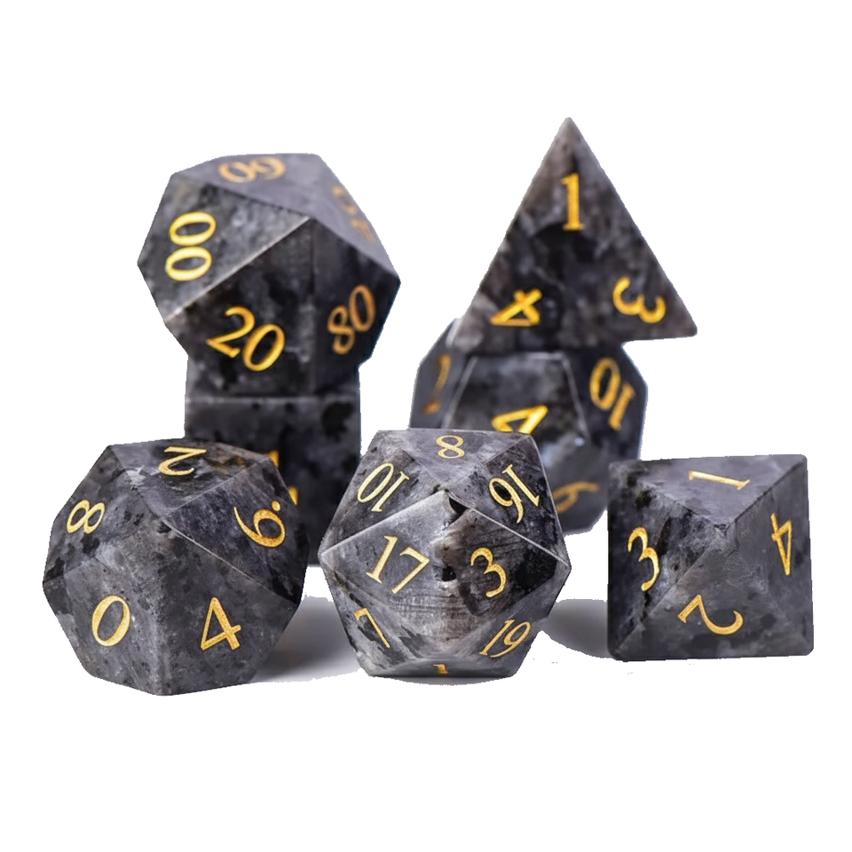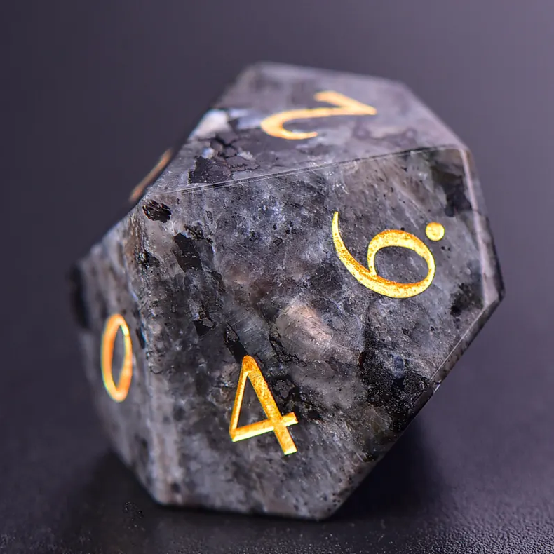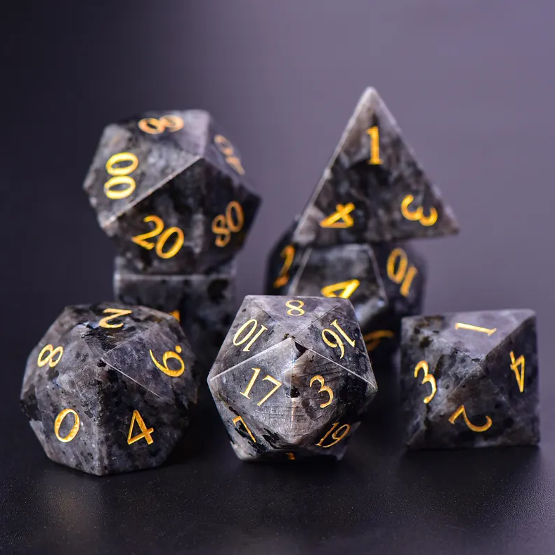 ลูกเต๋าหินคุณภาพสูง ลาวร์วิไคต์ คริสตัลธรรมชาติ หินบำบัดเรกิ แกะสลักตามสั่ง ชุดลูกเต๋าหินไวกิ้ง คริสตัล