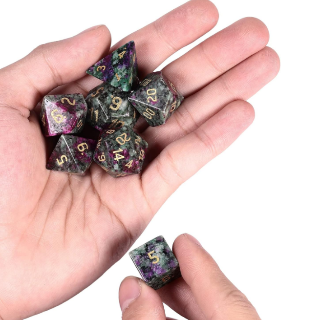 ลูกเต๋าหินคุณภาพสูง รูบี้ฟุชไซต์ คริสตัลธรรมชาติ หินบำบัดเรกิ แกะสลักตามสั่ง ชุดลูกเต๋าคริสตัลไวกิ้ง