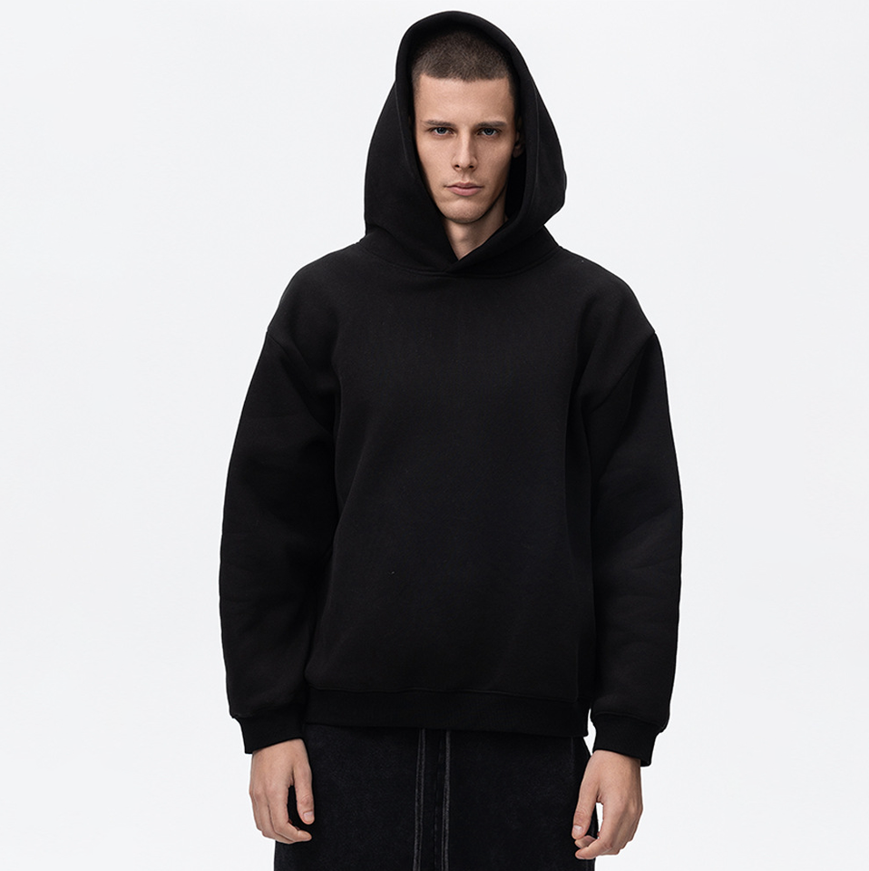 เสื้อฮู้ดดี้โอเวอร์ไซส์ผ้าฝ้ายหนานุ่มคุณภาพสูงสำหรับผู้ชาย แบบไม่มีเชือกผูก ไม่มีกระเป๋า สีพื้น ย้อมสีเรียบๆ ป้ายกำกับสั่งทำพิเศษ สำหรับฤดูหนาว