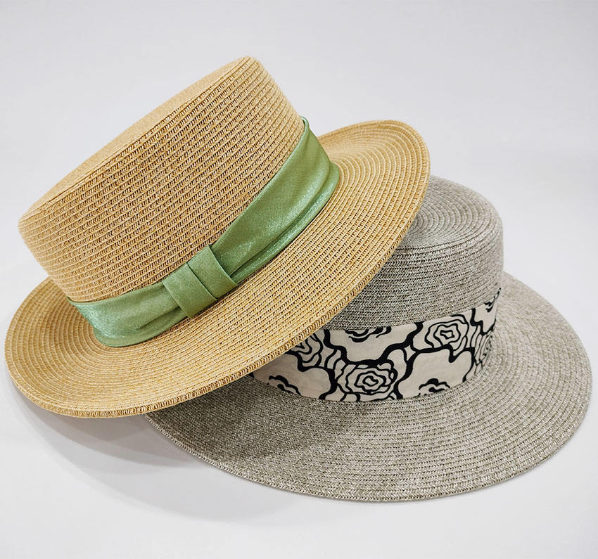 หมวกฟางทรงแบนสำหรับผู้หญิงและผู้ชายหมวกฟางกระดาษสำหรับฤดูร้อนหมวกกันแดดพร้อมโบว์ริบบิ้น