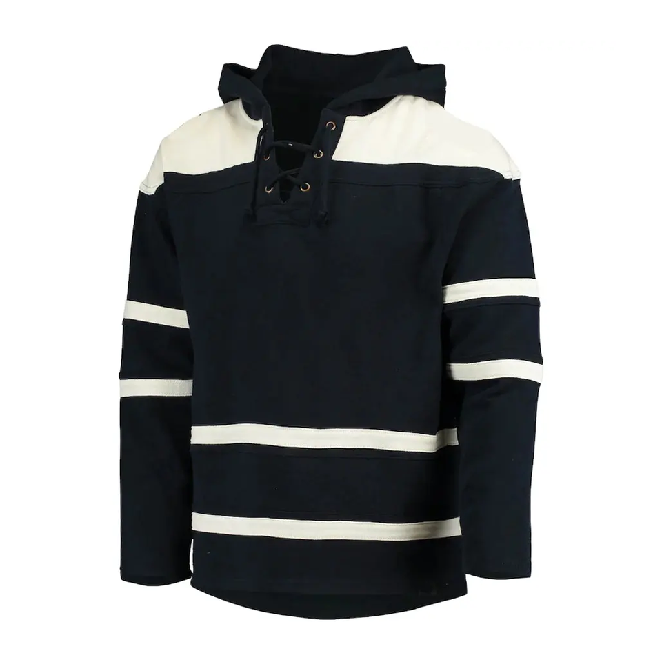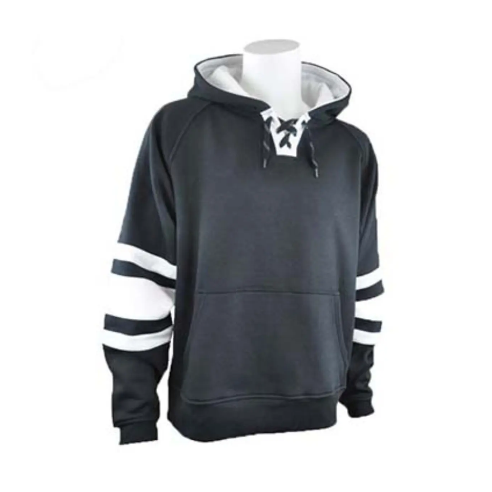 เสื้อฮู้ดผ้าเจอร์ซีย์ฮ็อกกี้ผ้าทวิลท์สีดำสีขาวขายดีสินค้าผลิตจำนวนมาก