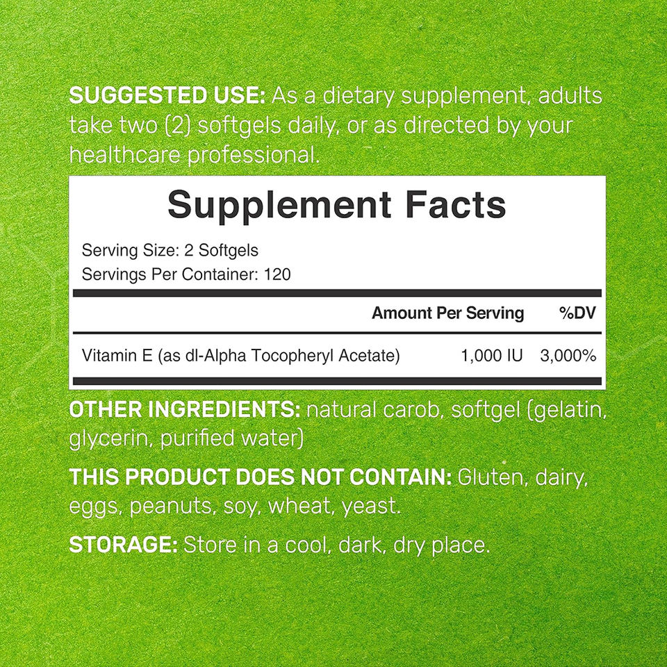 วิตามินอีคุณภาพสูง ปราศจากกลูเตน เสริมสร้างสุขภาพผิวและปกป้องเซลล์ แบบซอฟเจลแคปซูล