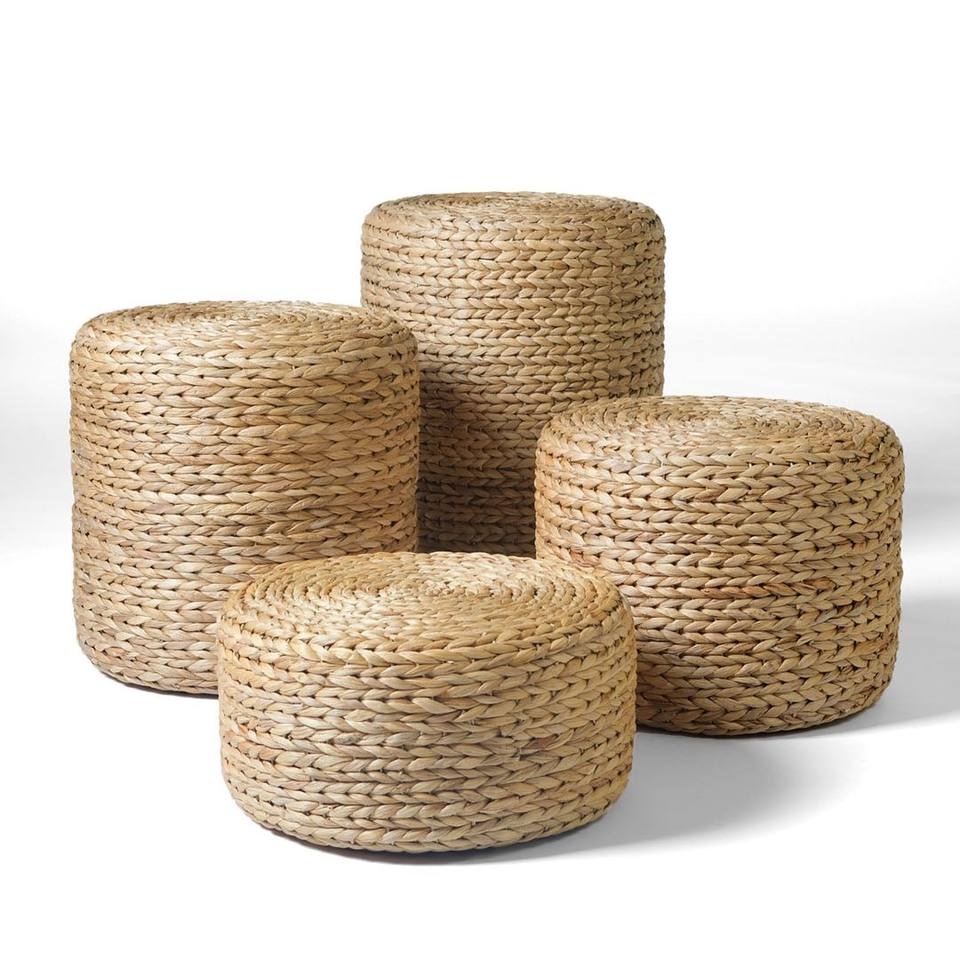 เก้าอี้พูฟออตโตมันสานจากผักตบชวาคุณภาพสูง มีจำหน่าย