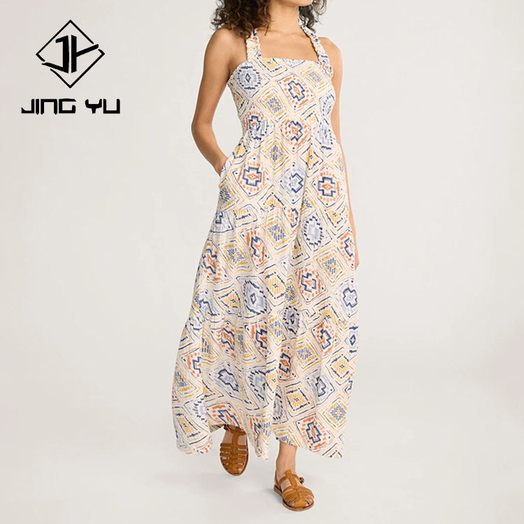 ชุดเดรสยาวผ้าฝ้ายเนื้อนุ่มแบบสั่งทำพิเศษ พร้อมเสื้อท่อนบนลายจีบคุณภาพสูงสำหรับผู้หญิง ดีไซน์สายไขว้ เหมาะสำหรับใส่ไปชายหาด