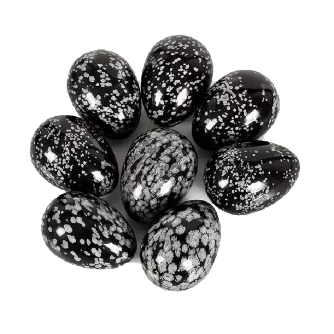 ไข่หยกหินออบซิเดียนรูปทรงเกล็ดหิมะคุณภาพสูง หินธรรมชาติ รูปทรงไข่ หยกคริสตัล ป้องกันพลังงานลบ เสริมสร้างพลังช่องคลอด