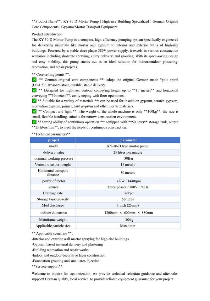งานซ่อมแซมผนังภายในและภายนอกอาคารสูง, การเติมยาแนว, การพ่นปูน, และอุปกรณ์ขนส่ง; ปั๊มปูน