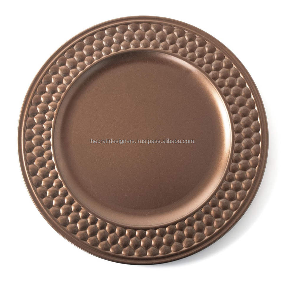 จานชาร์จแผ่นเคลือบทองแดงนูนสำหรับตกแต่งโต๊ะน้ำหนักเบาแผ่นโลหะ