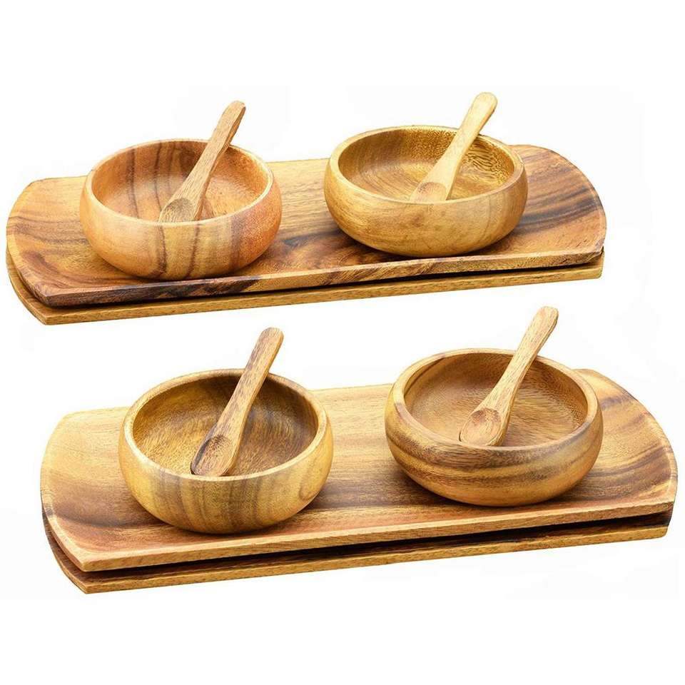 ชามไม้สำหรับดูแลผิวหน้าครีมดินเหนียวผสมอะคาเซียชามไม้