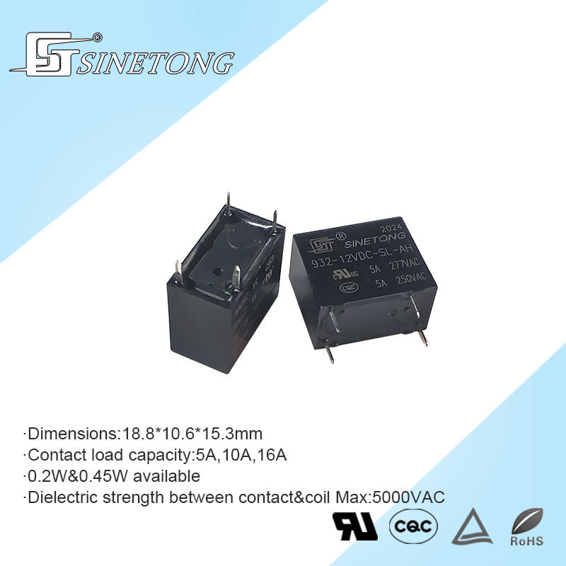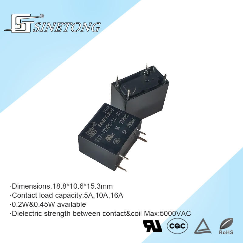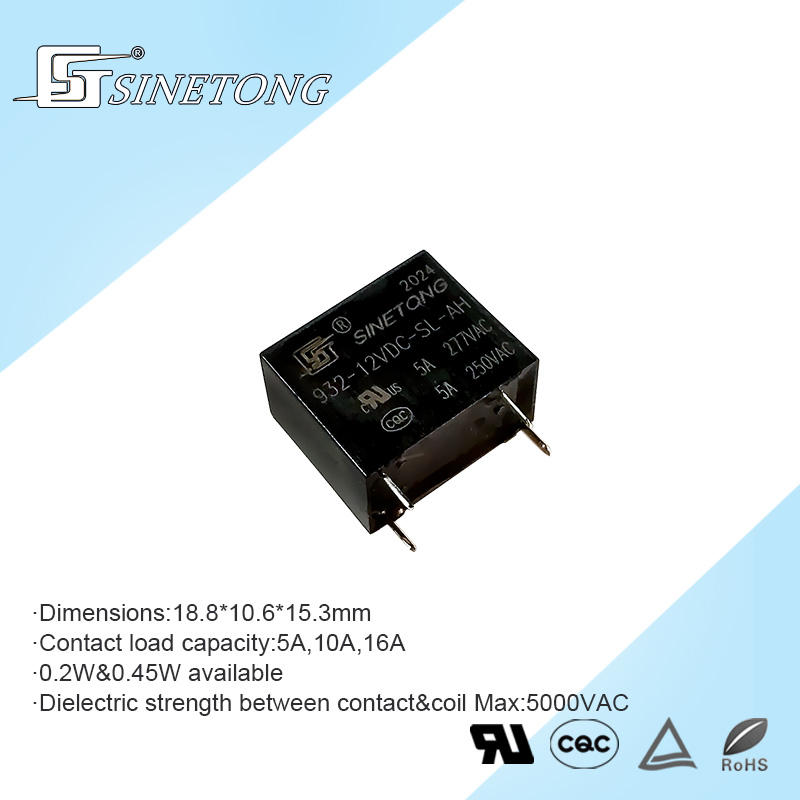 High Sensitivity 12V 5A Electromagnetic Relay 0.45W PCB with High Power Contact Load and Sealed Protection