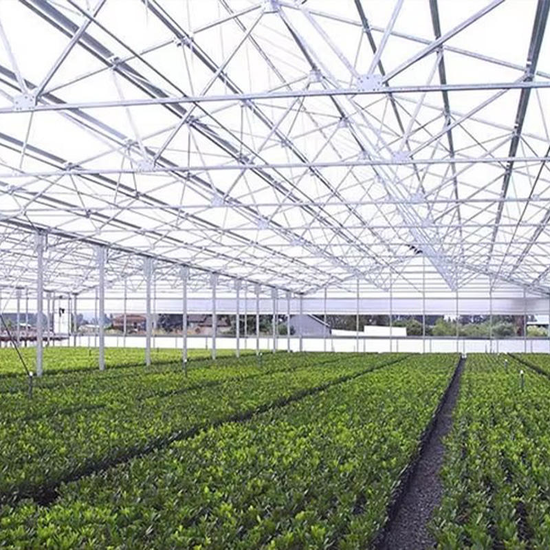 โครงสร้างเหล็กชุบสังกะสีแบบจุ่มร้อนความแข็งแรงสูง ทนทานต่อแรงลม รับน้ำหนักหิมะได้ โรงเรือนกระจกหลายช่วงสำหรับงานหนัก
