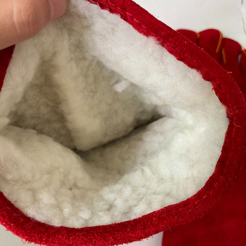 ถุงมือนิรภัยสำหรับเชื่อมอาร์กอนอาร์กวัวธรรมชาติอุณหภูมิสูงหนังวัวแยกกับการต่อหนังวัว