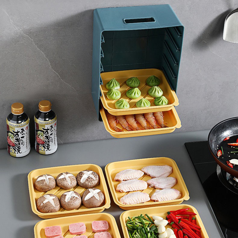 ชั้นวางผักในครัวแบบหลายชั้นที่ทันสมัยและเป็นมิตรกับสิ่งแวดล้อม ผลิตจากพลาสติก PP ด้วยกระบวนการฉีดขึ้นรูป ใช้เป็นถาดอาหาร ถาดบาร์บีคิว และภาชนะใส่อาหาร