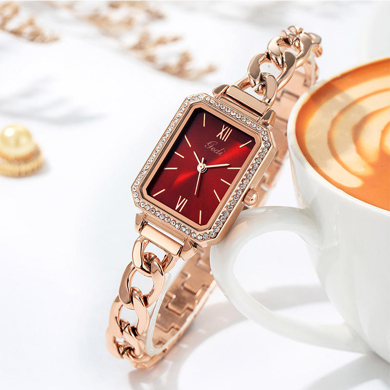 นาฬิกาข้อมือผู้หญิงควอทซ์กันน้ำประดับพลอยเทียมทรงสี่เหลี่ยมสายยีนส์