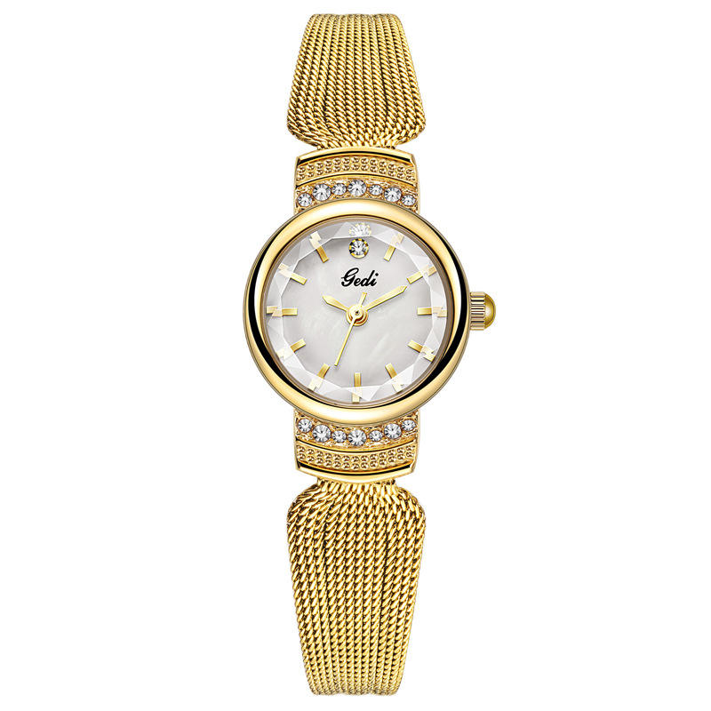 นาฬิกาผู้หญิงสุดคุ้มนาฬิกาควอทซ์กันน้ำวินเทจหน้าปัดขนาดเล็กประดับมุกแท้