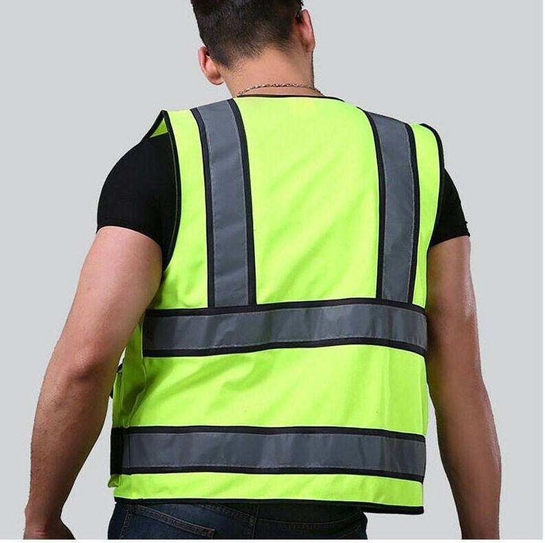 เสื้อกั๊กนิรภัยแบบไม่มีแขนสำหรับงานก่อสร้างและงานกลางแจ้ง พร้อมแถบสะท้อนแสง มองเห็นได้ชัดเจน