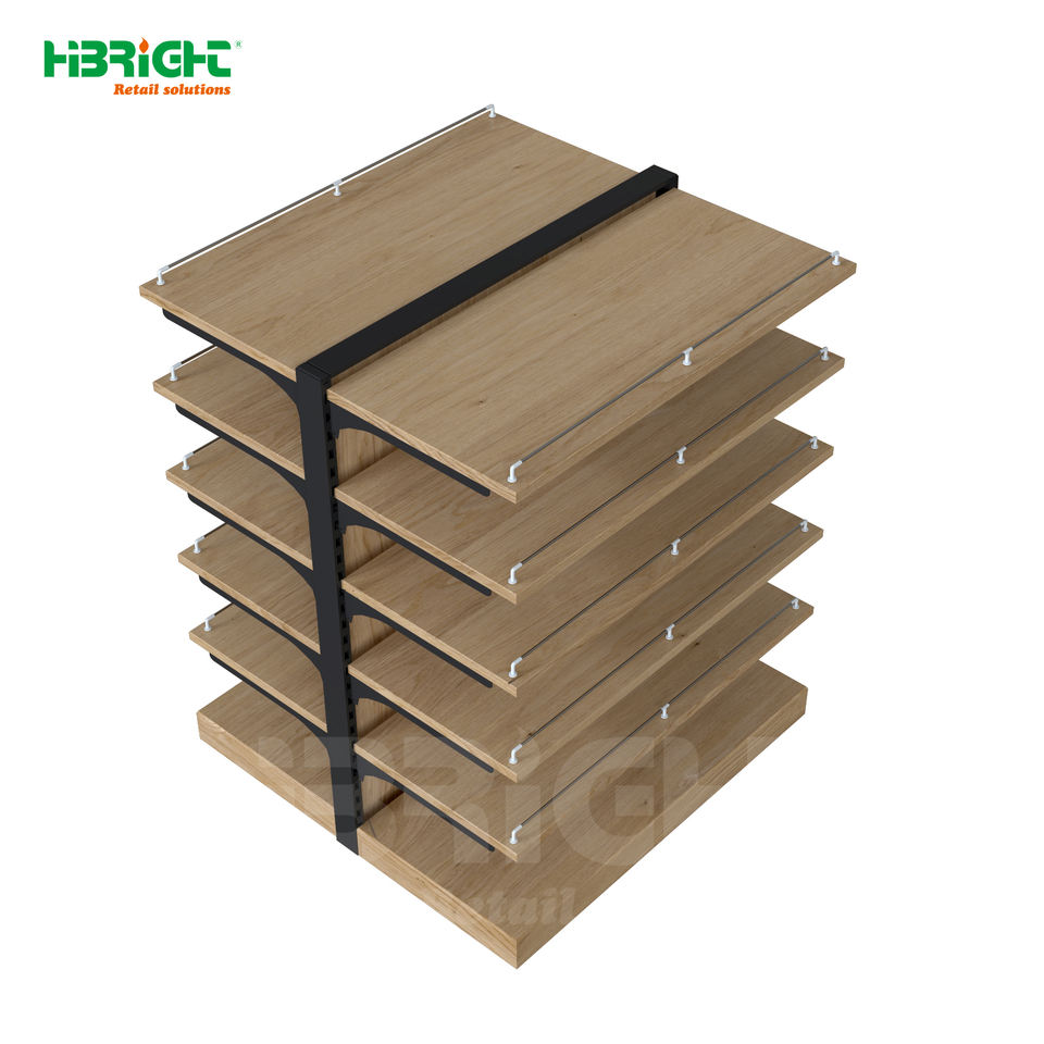 ชั้นวางขนมปังไม้แบบหลายชั้นสองด้าน แข็งแรงทนทาน ยี่ห้อ Highbright พร้อมตะขอแขวนสำหรับขนมปัง ขนมขบเคี้ยว ร้านค้าปลีก