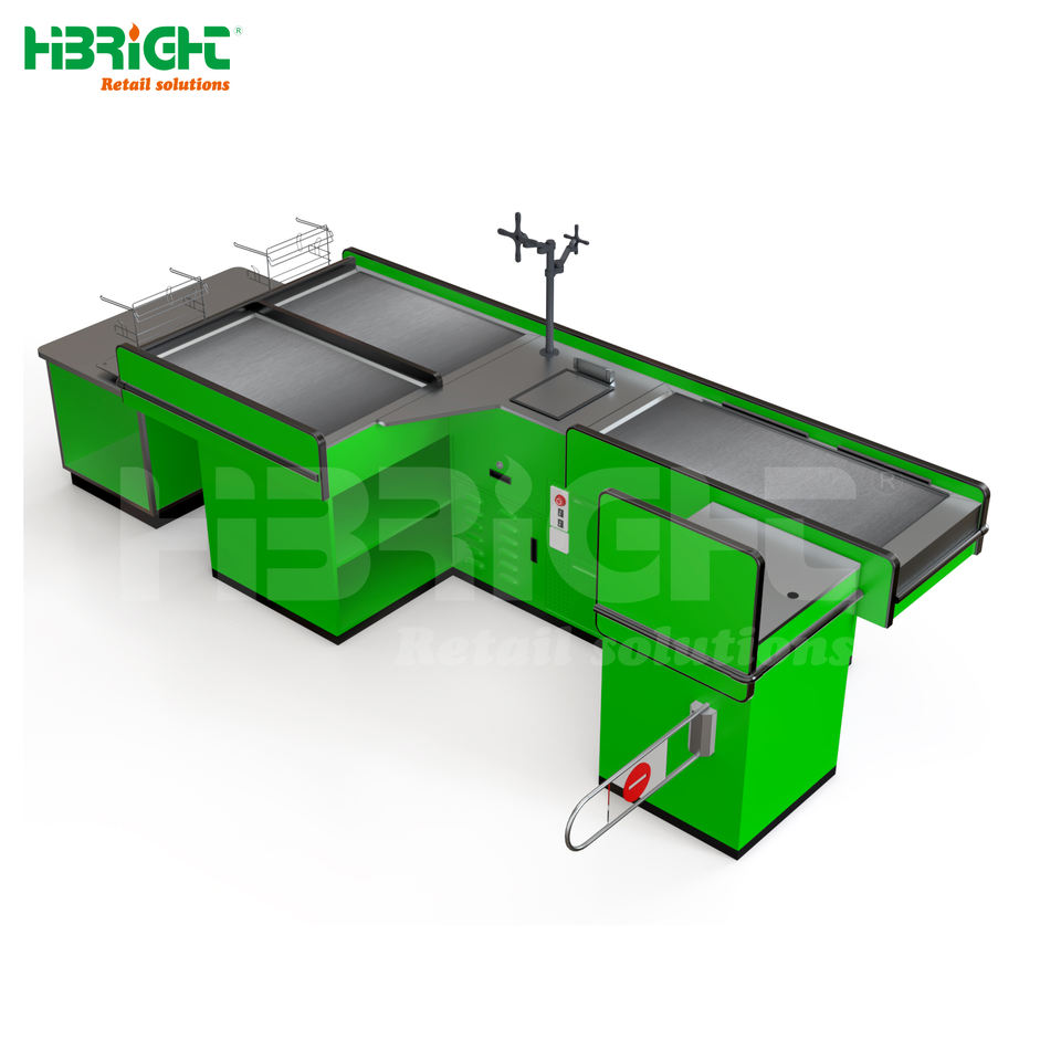 Highbright เคาน์เตอร์บริการเหล็กทนทานเคาน์เตอร์ชำระเงินซูเปอร์มาร์เก็ตเชิงพาณิชย์ที่ทนทานพร้อมที่วางป้ายรุ่น HBE-CC-06B