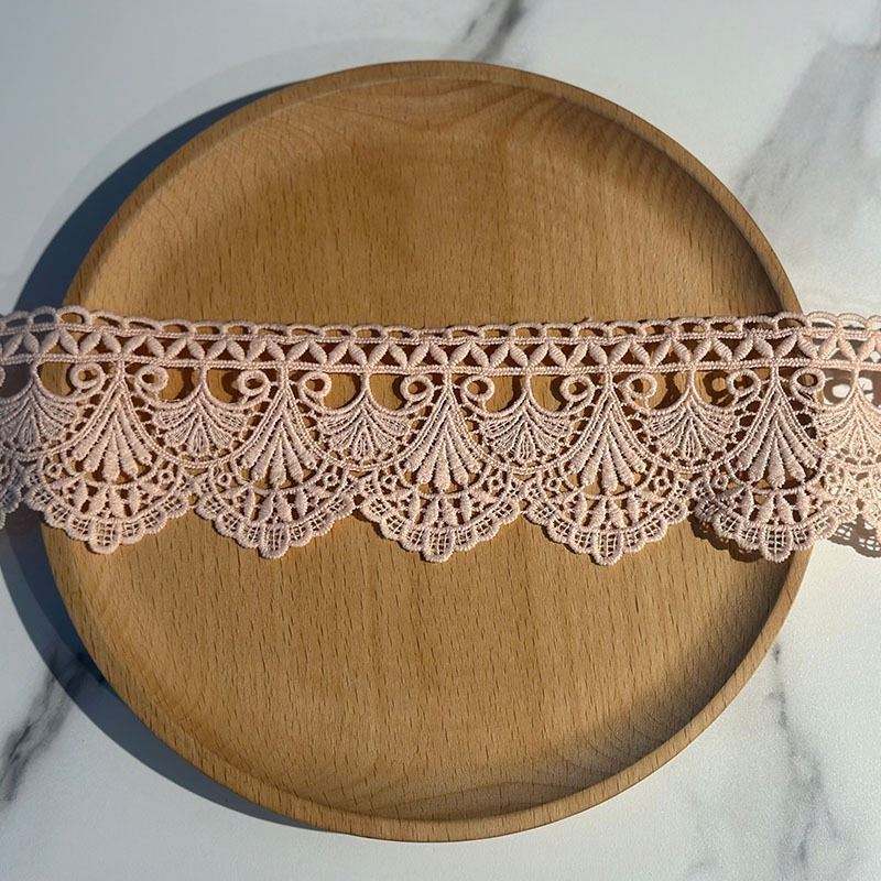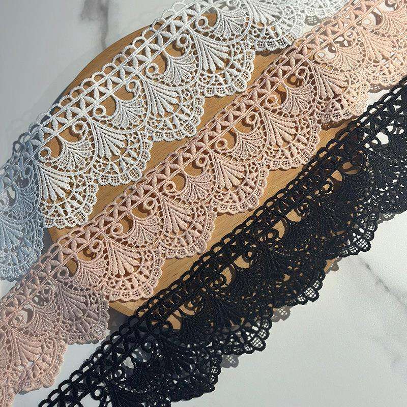 ผ้าลูกไม้โพลีเอสเตอร์ไหมนมคุณภาพสูงกว้าง 9 ซม. ละลายน้ำได้ สำหรับตัดเย็บเสื้อผ้า