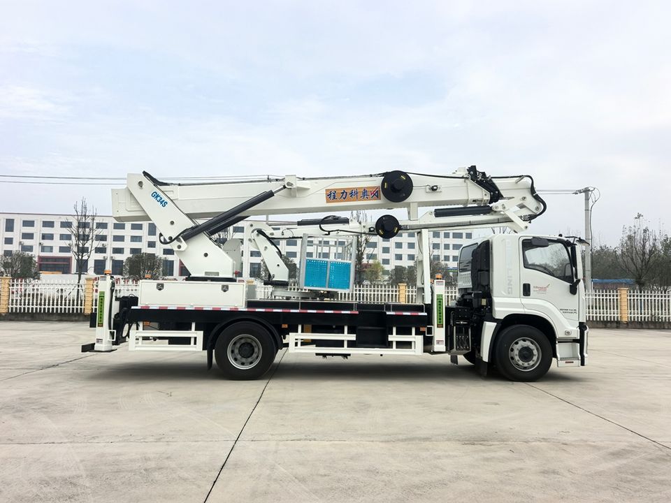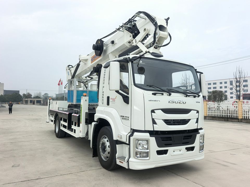 รถบรรทุกติดตั้งแท่นยกคนและสินค้า ISUZU Giga 45 เมตร รุ่นที่สูงสุด พร้อมบูมยืดหดได้ 8 ท่อน สำหรับยกคนและสินค้าสูงพิเศษ