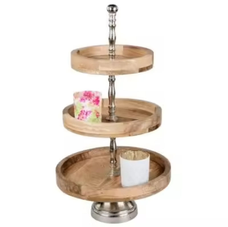 Highest Design Wooden & Metal Cake Stand 3 Tier Brown Finished Home Wedding Birthday Party Display Stand Cake Tools
