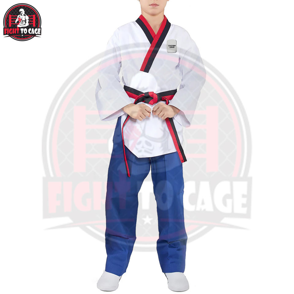 ชุดยูนิฟอร์มเทควันโดสำหรับผู้ใหญ่ น้ำหนักปานกลาง ผลิตจากวัสดุผ้าฝ้ายโพลีเอสเตอร์คุณภาพสูงสุด จากซัพพลายเออร์ที่ดีที่สุด