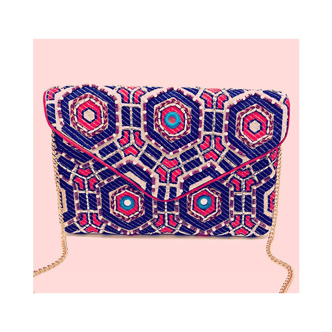 กระเป๋าคลัทช์ประดับสีฟ้า