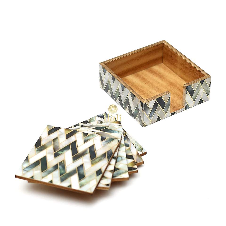 ที่รองแก้วแบบฝังกระดูกไม้ทรงกลมสำหรับโรงแรมและร้านอาหารงานฝีมือดาวอินเดีย