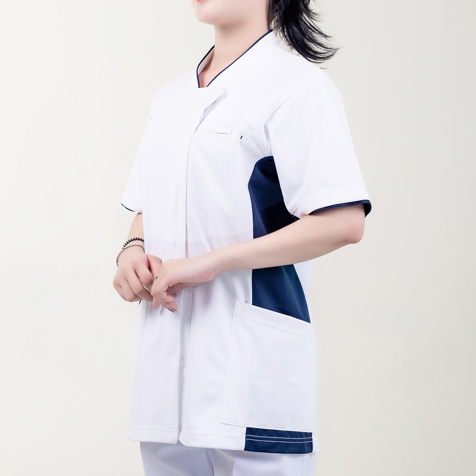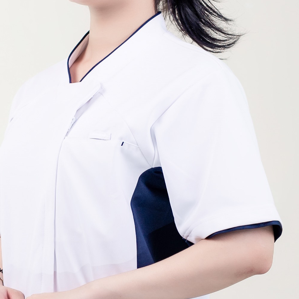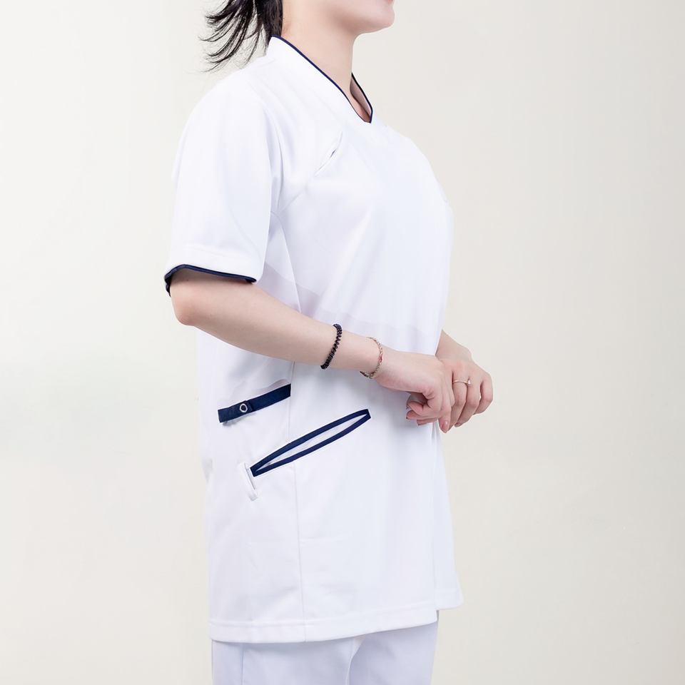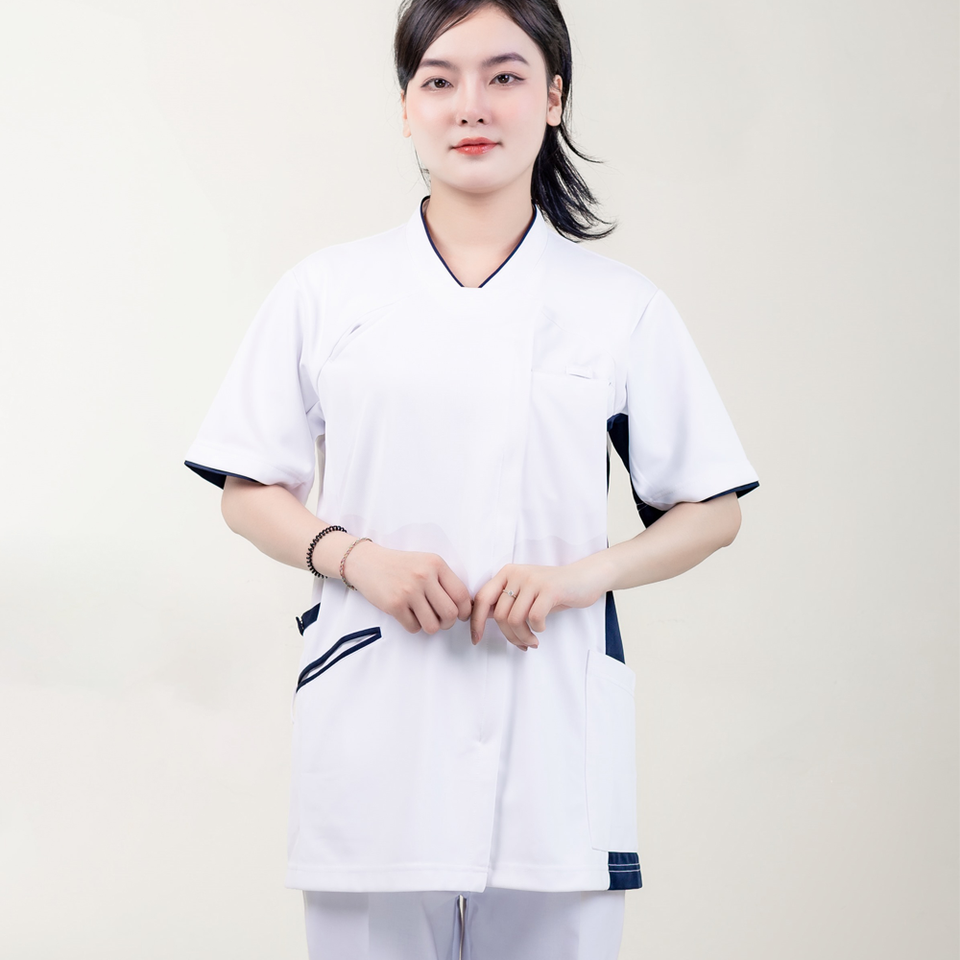 เสื้อคอตตอน45% สแปนเด็กซ์ผ้าฝ้าย52% ชุดยูนิฟอร์มทางการแพทย์เป็นมิตรกับสิ่งแวดล้อม