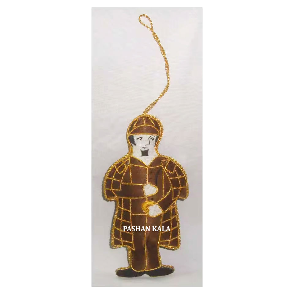 วัสดุผ้าคุณภาพสูงที่มีการปักสีทองซาริและลูกปัดปรับแต่งทำงานรูปคนต้นคริสต์มาสเครื่องประดับแขวน