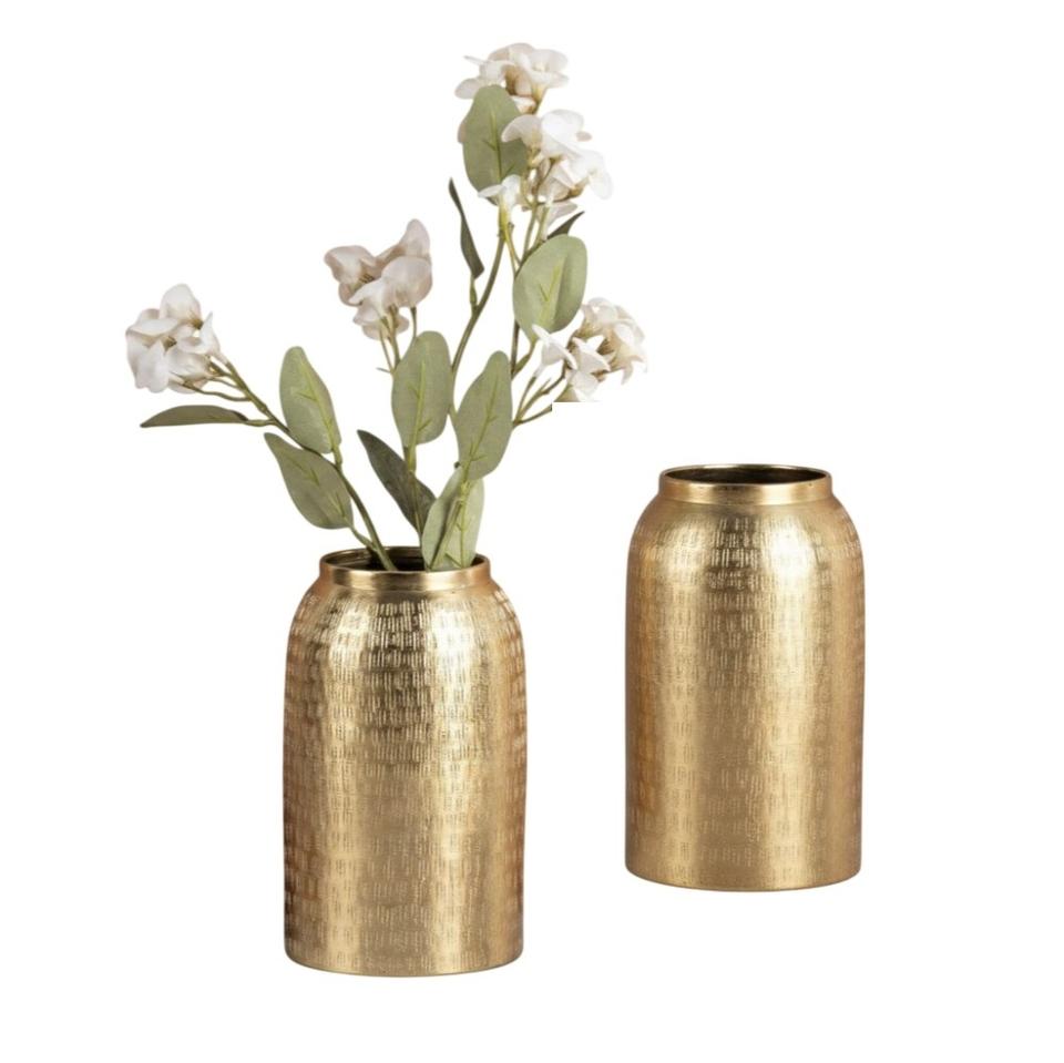 แจกันดอกไม้อะลูมิเนียมลายตอกทองคำคุณภาพสูงสุด ดีไซน์ทันสมัย ชุดตกแต่งบ้านสุดหรูสำหรับวางบนโต๊ะ ตกแต่งห้องนั่งเล่น ราคาประหยัด