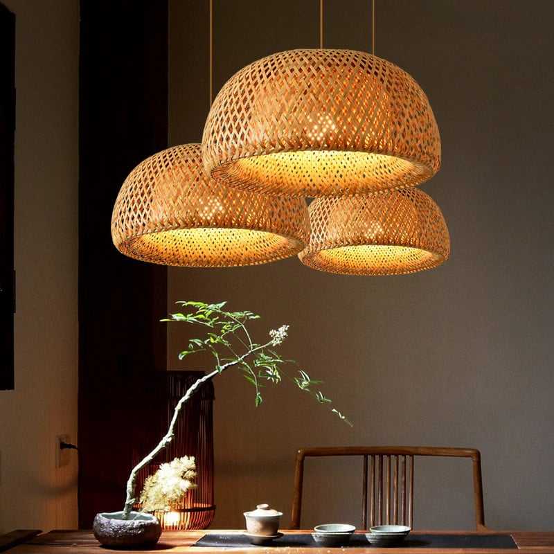 โคมไฟระย้าหวายตกแต่งโคมไฟไม้ไผ่ธรรมชาติแบบดั้งเดิมทำด้วยมือ