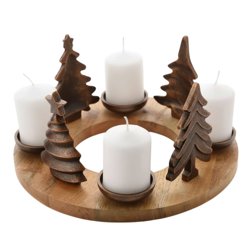 ที่วางเทียนทรงเสาสำหรับตกแต่งโต๊ะคริสต์มาส ทำจากไม้มะม่วงและโลหะคุณภาพสูง ดีไซน์สวยงาม ลดราคาพิเศษ