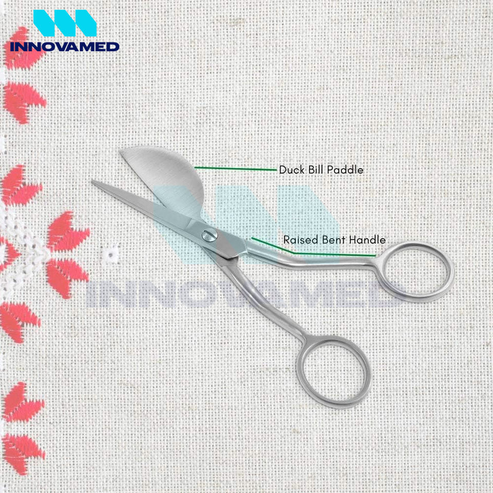 กรรไกรสแตนเลสรูปใบเป็ด6นิ้วสำหรับงานศิลปะและผ้าออกใหม่