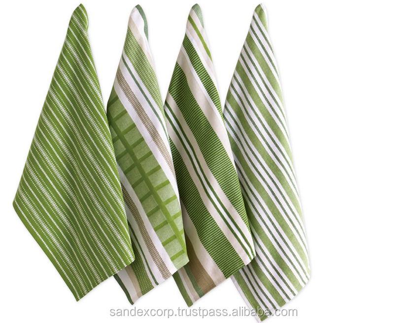ผ้าเช็ดจานและผ้าเช็ดปากลายทางคุณภาพสูงสุด ผลิตจากผ้าฝ้ายทอแห้งเร็ว เป็นมิตรกับสิ่งแวดล้อม ราคาถูก ผู้ส่งออกจากอินเดีย