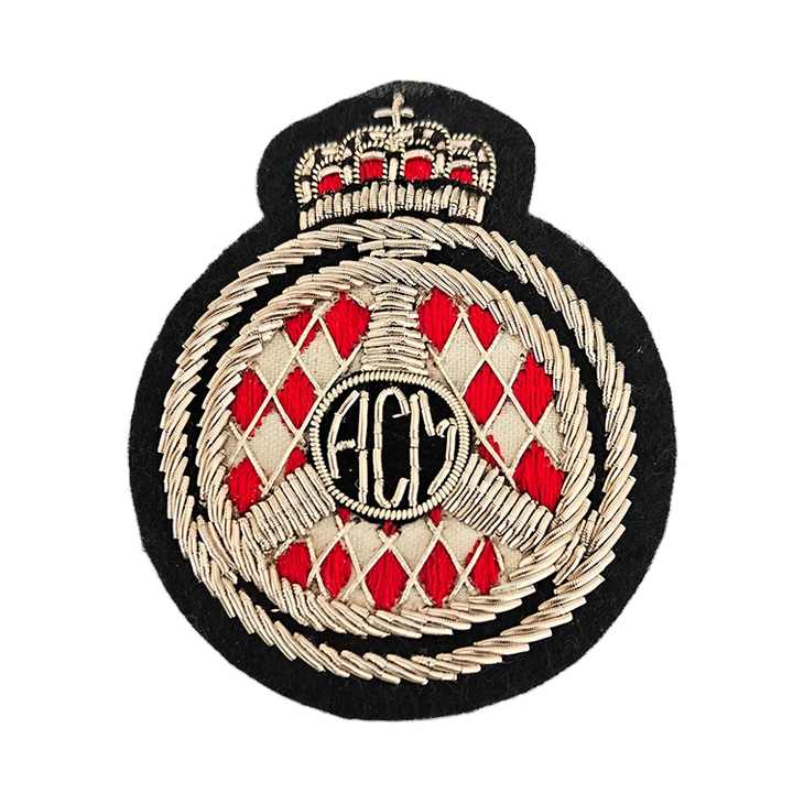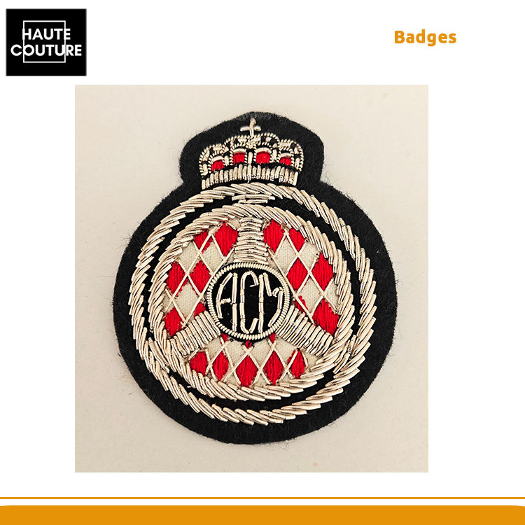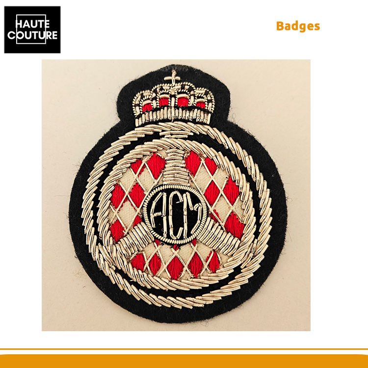 ตราปักมือทำยอดนิยมขายดีที่สุด – ขนาด 5×6 ซม. ลายมงกุฎสีแดงและสีเงินทรงกลมสำหรับเสื้อแจ็คเก็ต ราคาโรงงานโดยตรง