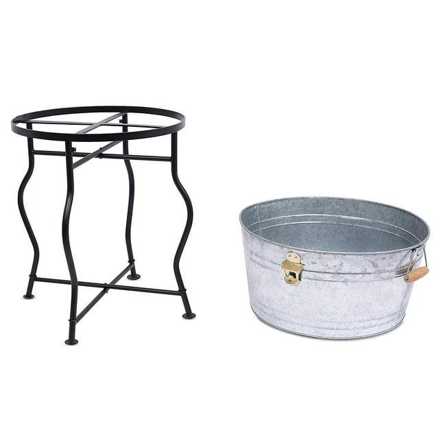 ถังน้ำแข็งเหล็กชุบสังกะสีมาใหม่ถังแช่ไวน์เบียร์เย็นโลหะสีดำสำหรับปาร์ตี้เครื่องดื่ม