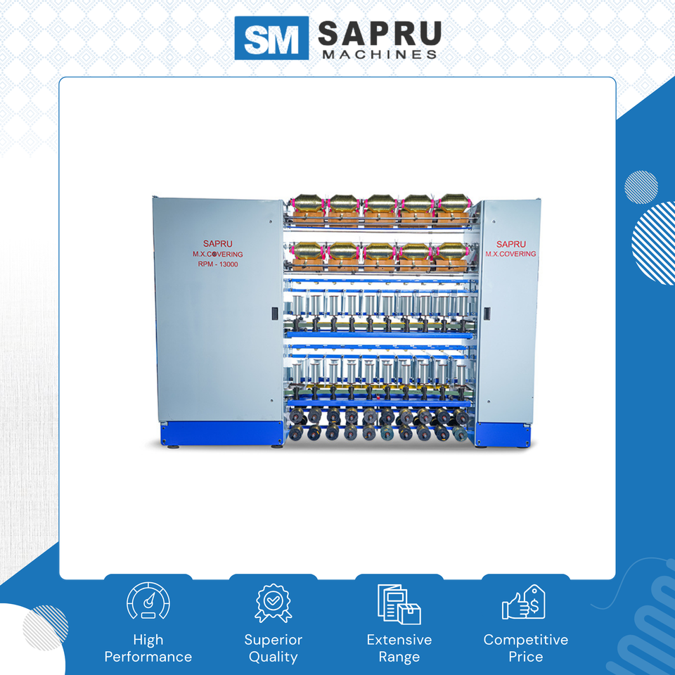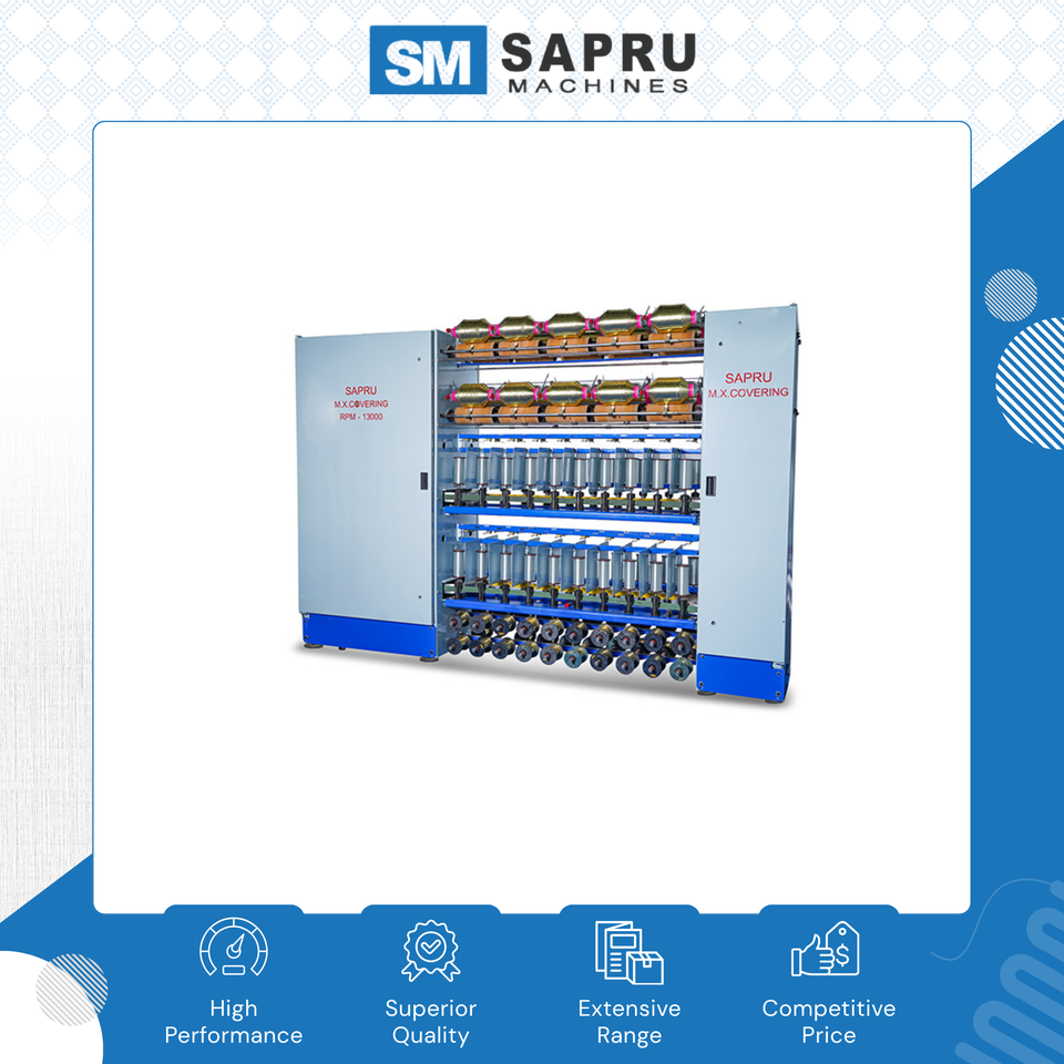 Highest Selling Outstanding Quality Automatic MX/S&Z Double Covering Spinning Machine for Elastic Core Yarn SAPRU MACHINES PVT